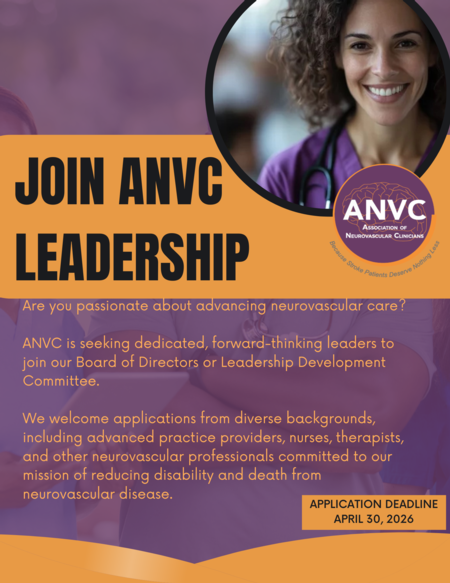 The Association of Neurovascular Clinicians (ANVC) is an organization of stroke professionals dedicated to improving quality and access to acute stroke care. The organization was formed to meet the needs of interdisciplinary health professionals engaged in the care of stroke patients, and is the only stroke-specific professional membership organization for non-physicians in the world. #becausestrokepatientsdeservenothingle